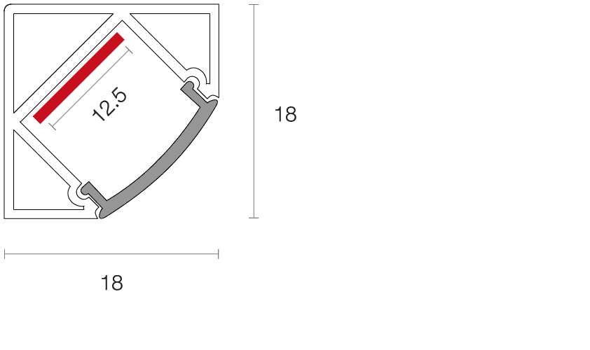• Surface mounted aluminium angled extrusion profile with wide trim, designed to sit against corners